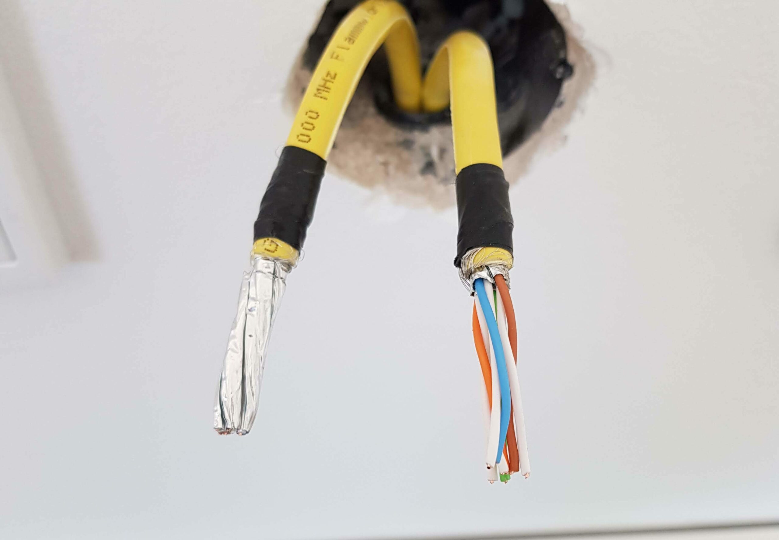 Habe ich einen Medienverteiler, kann ich die Kabel entsprechend lang halten und kann bei Bedarf die Kabel in die Zwischenwand schieben. Einige Elektriker fixieren die Kabel mit einem Kabelbinder. Hierfür muss man beim schieben etwas mehr Kraft aufwenden um die Halterung abzubrechen. Somit habt ihr im späteren Verlauf die Möglichkeit, die Kabel etwas schöner zu positionieren.